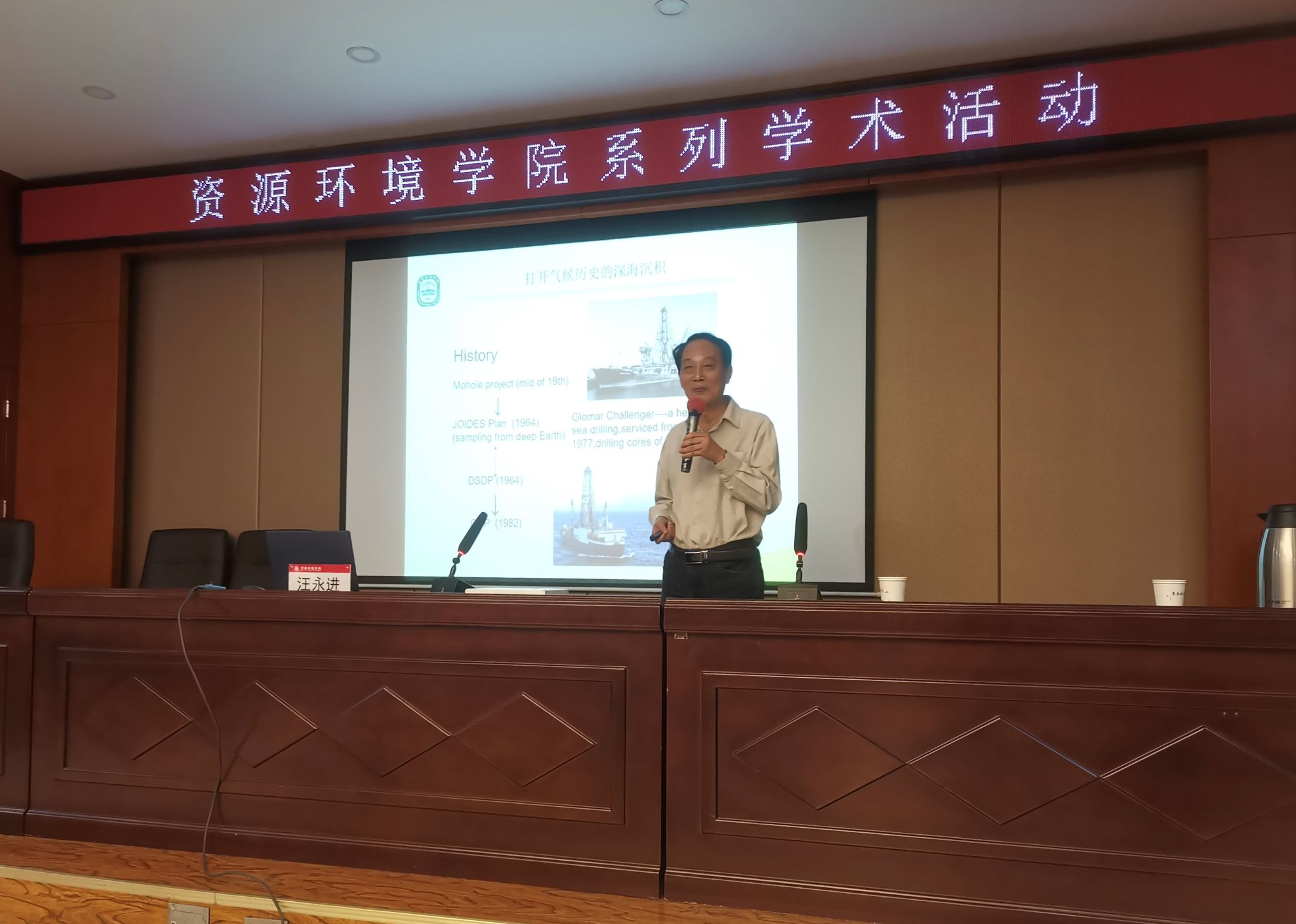 2023年10月16日下午,应太阳集团tyc33455邀请,南京师范大学地理科学学院汪永进教授莅临我院进行学术交流,并在博学楼二层报告厅为学院师生作了题为“气候变化档案”的学术交流报告。太阳集团tyc33455领导班子、教研室主任、众多青年教师及学院研究生、本科生共同参加了此次报告。