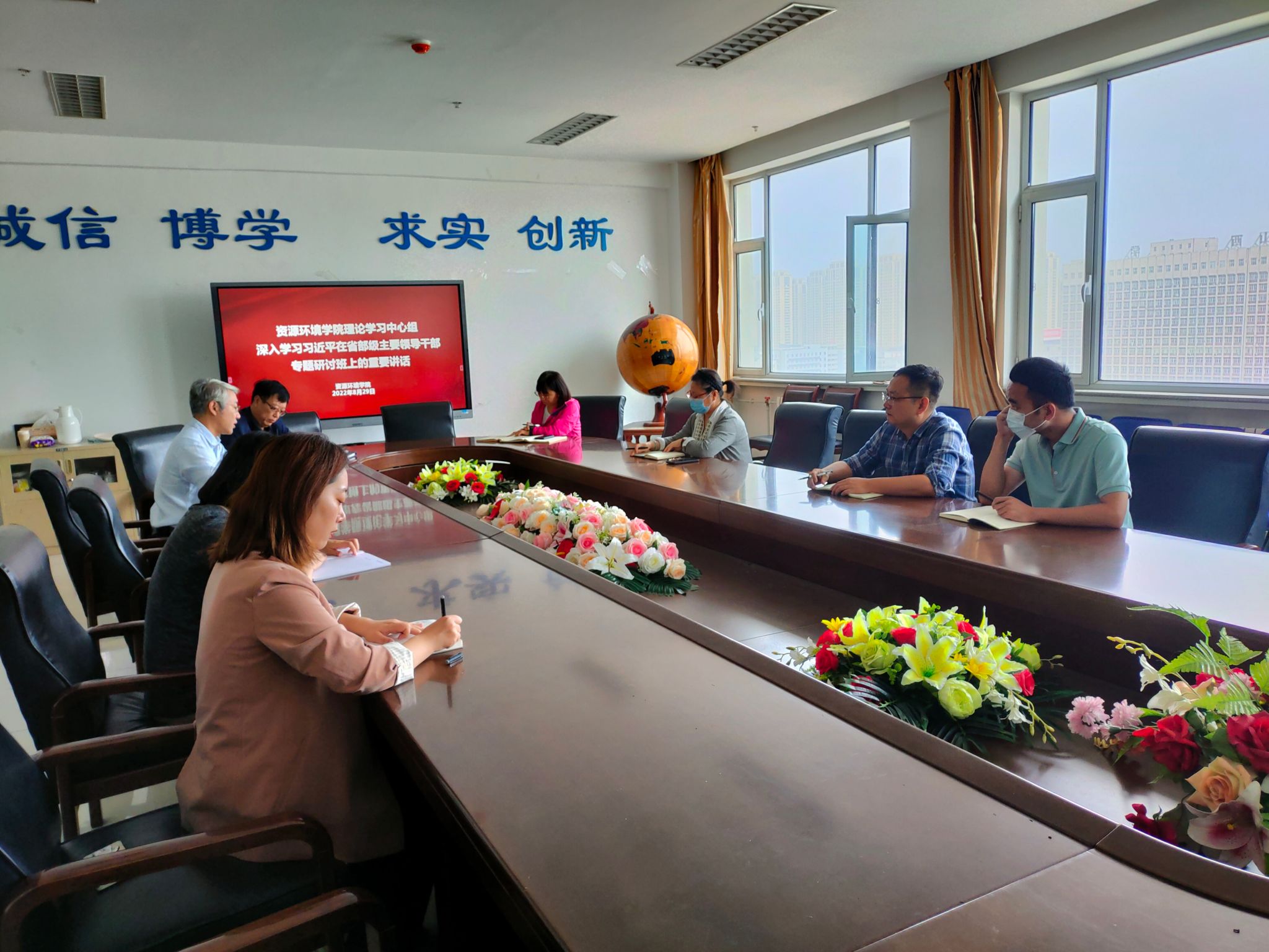 8月29 日上午,太阳集团tyc33455党委理论学习中心组在博学楼11层会议室召开了集中学习会,专题传达学习习近平总书记在省部级主要领导干部专题研讨班上的重要讲话精神。学院领导班子全体成员、教研室主任及全体辅导员参加会议。会议由院党委书记李留海主持。