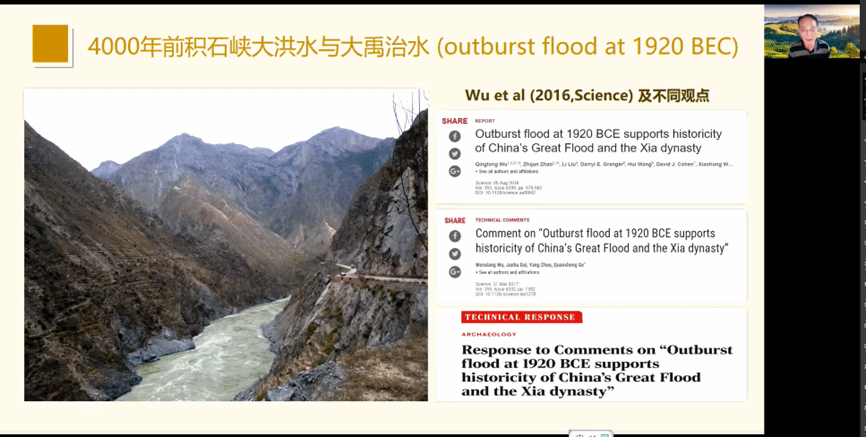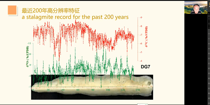 公开课第一部分内容是古气候与古文明的学术争议,汪教授从积石峡大洪水与大禹治水及Science相关研究引入话题,讲述了青藏高原在3600年前的农牧经济发展及证据,唐朝灭亡的气候因素和政治因素争议,古格王朝的灭亡等历史事件与气候演变的关系。第二部分讲述了东亚季风气候的历史,从贵州董哥洞石笋记录的亚洲季风增强的历史,讲到东亚季风雨水的时空演变规律,分析了不同历史时期东亚季风的演变。第三部分汪教授从雨水的循环和石笋记录雨水的机理入手,通俗易懂的讲述了石笋记录气候因子的原理,引入石笋记录的年代学和古气候相关研究,并与树轮同位素记录的气候特征进行了对比分析,验证了石笋记录气候特征的可靠性,向师生们展示了石笋记录气候特征的特点。第四部分汪教授从石笋记录的气候特征讲述了中原文明的起源,展示了龙腑宫石笋记录的4700年来亚洲季风历史特征,结合4700年来年际分辨率氧同位素的记录,阐述了4200年的干旱事件导致的新石器文化的消亡,大禹治水和夏朝的石笋证据。第五部分汪教授讲解了中原文明与季风气候的关系,从夏朝和商朝都城的变迁与气候变化河道变迁的相关性,两汉交替时期气候特征灾荒和流民问题,讲到印度文明与季风气候的关系,中原文明与季风气候的特征。最后,汪教授对古文明和古气候关系进行了总结:在测年误差范围内,许多古文明的终结与十年际以上的长期干旱在时间上是吻合的。就某个单独的古文明消失事件而言,可以用人类社会本身因素来解释而与自然气候变率无关,如战争、人口过快增长、资源消耗等(古格和唐朝灭亡等)。古气候与历史记载的联合解读,有利于进一步加深理解古文明起源与演化的社会因素和气候背景,气候突变可能是古文明起源和消失的诱发因素或最后一根“稻草”。