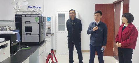 随后,武瑞杰博士带领大家参观了山西锦烁实验室,并详细介绍了实验室整体布局、现有的先进分析检测仪器、测试精度、检测技术条件等情况。班凤梅院长、杨志勇副书记赞赏了山西锦烁高效的管理体系、浓厚的科研氛围和完备的分析设备。