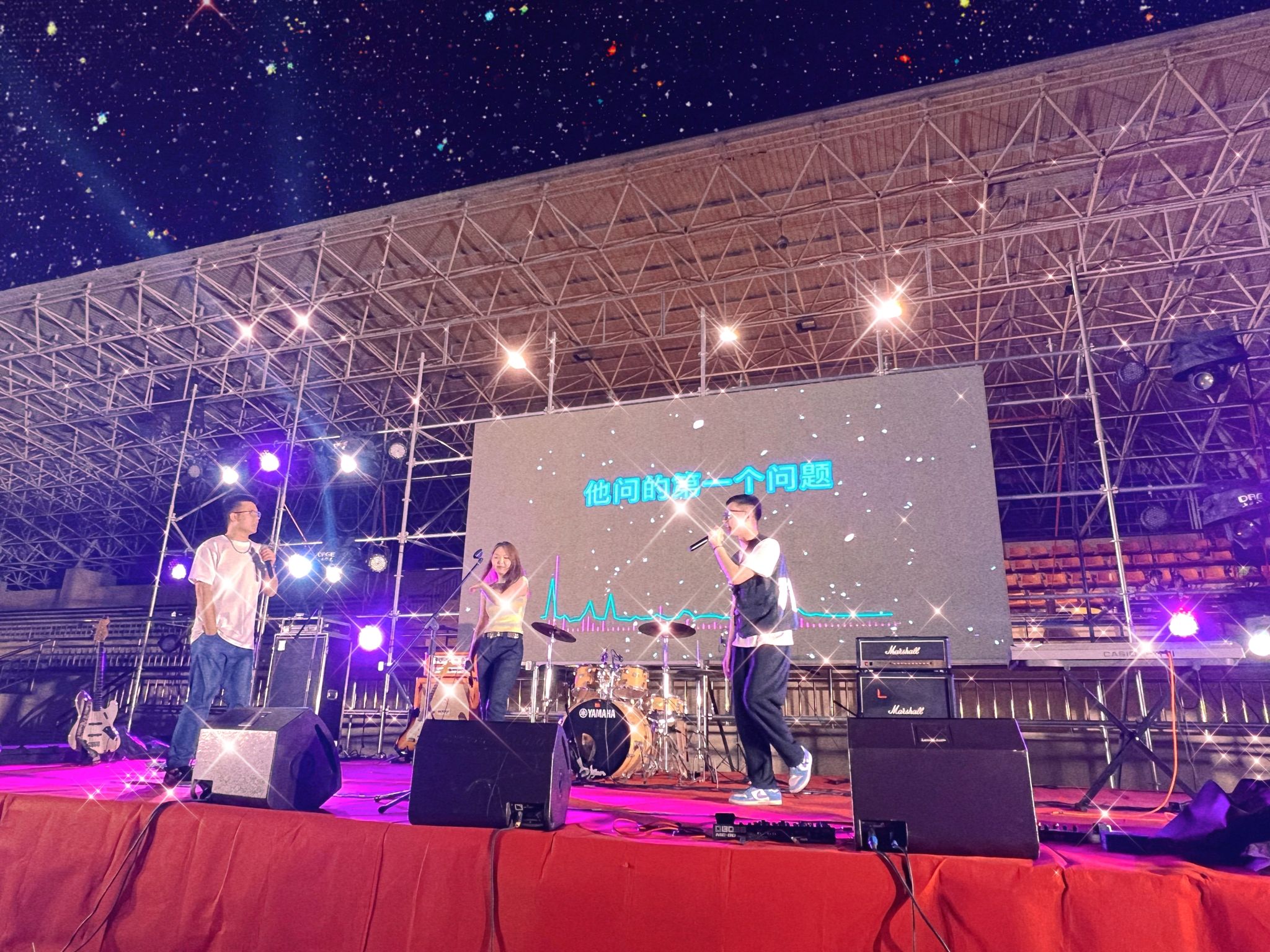 青春演唱,“音”你而来。音乐节开场,“十佳歌手”刘宇轩、李宇麟作为神秘嘉宾,分别以歌曲《After Journey》《My Heart Will Go On》点燃气氛。随后,“EMOHA”乐队的《爱要坦荡荡》《谁》……“泥头车”乐队的《蜂鸟》《突然好想你》……“海马群岛”乐队的《世界上的另一个我》《唯一》相继登台演绎,燃爆舞台。