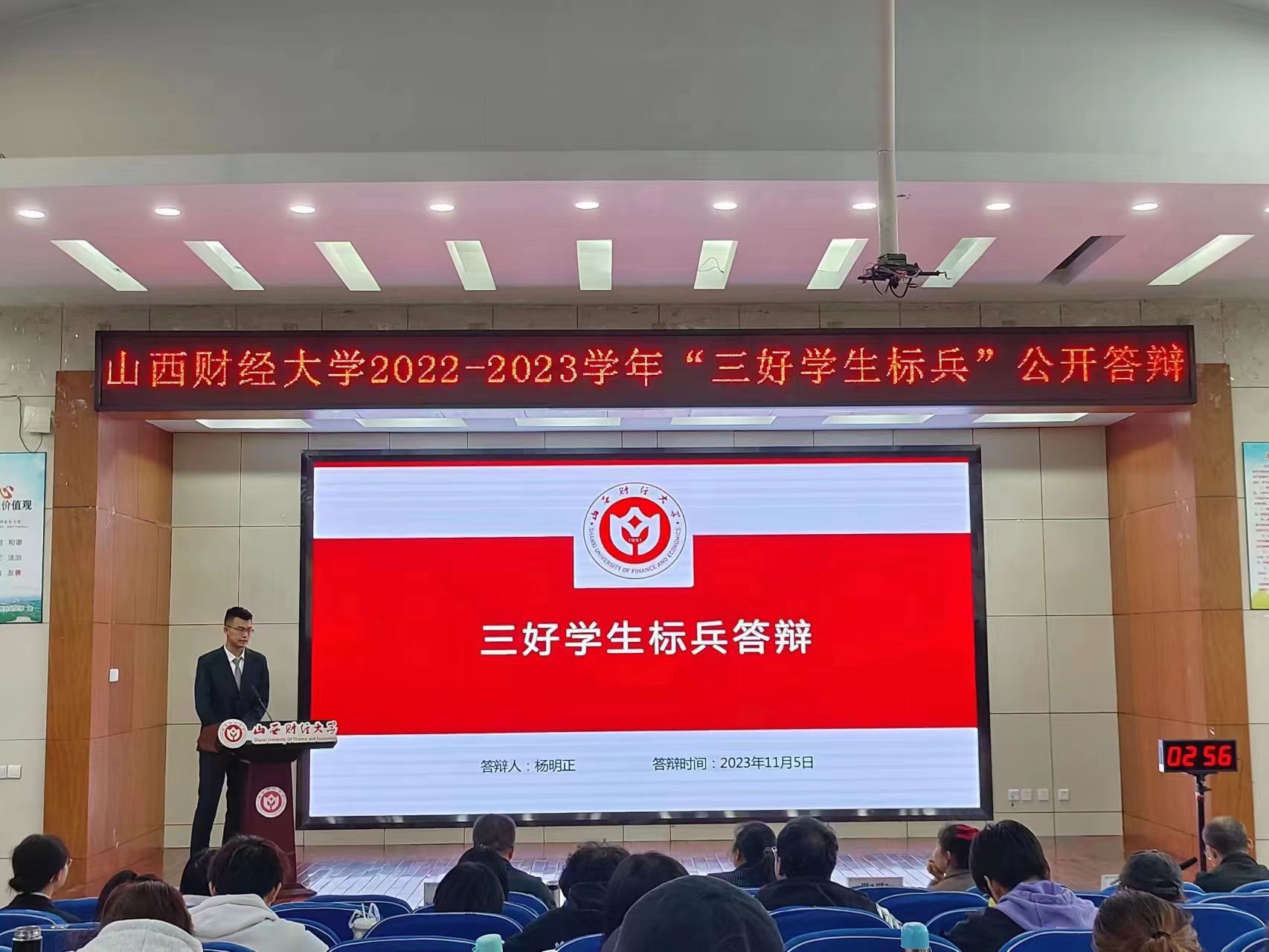 2023年11月4日、5日,太阳集团2022-2023学年“三好学生标兵”公开答辩,在敏行楼301阶梯教室举行。经过激烈角逐,我院2021级自然地理与资源环境专业杨明正同学凭借优异的学习成绩、优秀的竞赛成果和丰富的社会实践经历荣获2022-2023学年校“三好学生标兵”荣誉称号,全校获此殊荣的三好学生有37名,我院只有一名。