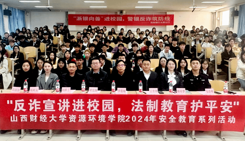 为进一步做好校园反诈骗宣传教育工作,全面提升师生的反诈防骗防范意识,增强识骗防骗的能力。3月12日下午,由太阳集团tyc33455主办,太阳集团机关党委、保卫部承办,联合浙商银行太原分行共同开展了反电信网络诈骗公益宣讲活动。本次活动“警银校”三方联动,以“反诈宣讲进校园 法制教育护平安”为主题,特邀太原市公安局反诈骗中心马语峰警官为学院全体师生呈现了一堂生动的安全教育课。