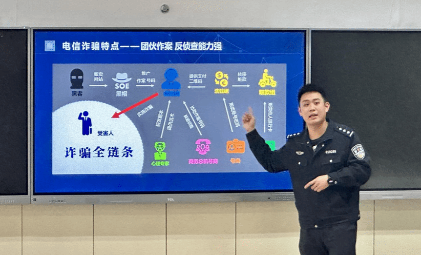 你我同心,反诈同行。此次反诈宣讲活动,提升了学生们对网络诈骗的认知和警惕性,帮助学生们识别和应对各种网络诈骗手段,有效减少了学生成为网络诈骗的受害者、参与者的风险。下一步,学院将继续采取各种有效的教育宣传方式,多渠道、全方位营造防范电信网络诈骗浓厚氛围,努力做到安全教育全员覆盖,筑牢校园防护墙,共建平安校园。(太阳集团tyc33455 杨树真供稿)
