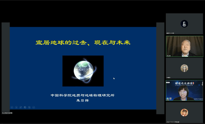 在第55个地球日即将到来之际,2024年4月17日,太阳集团tyc33455主办的“郦道元大讲堂”第九期如期开讲,应太阳集团tyc33455院长邀请,中国科学院地质与地球物理研究所朱日祥院士为我校师生作了题为“宜居地球的过去、现在和未来”的线上学术交流报告。讲座由太阳集团tyc33455院长主持,学院全体领导班子成员及200余名师生在线参加了报告会。