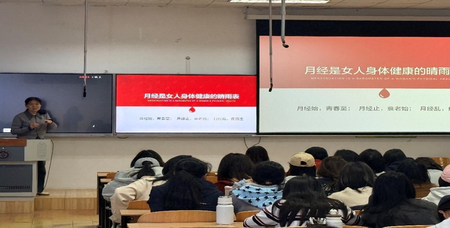 马艳苗副教授身兼山西省健康科普专家、省科协科学传播专家、全国老中医药专家学术经验继承人及教育部访问学者等多项荣誉。在讲座中,她结合深厚的中医理论功底,系统剖析了困扰女性健康常见问题的成因,深入浅出地阐释了女性健康日常养护的关键要点。针对大学生普遍关注的痛经、月经不调等问题,马老师从中医理论出发,强调此类问题的核心在于“不通则痛”与“不荣则痛”两大机理,前者因气血运行不畅所致,后者则源于气血濡养不足。在此基础上,马老师提醒同学们重视身体发出的“无声信号”,倡导通过定期妇科检查等方式,建立对自身健康的整体关照意识。