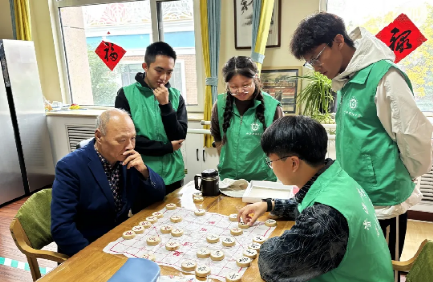 评象棋人生:青春锐气不可挡,暮岁沉重稳布局。志愿者们与老人们开展了棋艺比拼,楚汉相争,在落子声中思考妙策,轻拂棋子,仿佛与老人穿越时空,一招一式,尽显智慧,每一步棋都是老人们对自己人生的思考,也向志愿者传递着人生哲理。