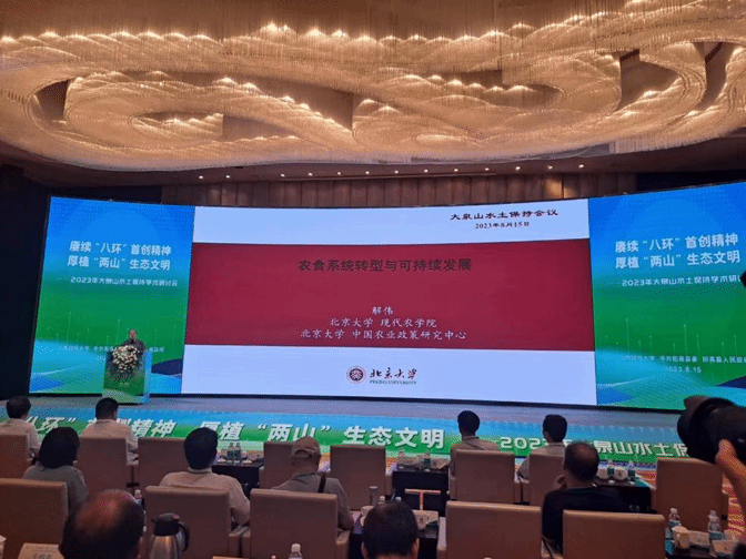 2023年8月15日上午,在太阳集团、中共阳高县委和阳高县人民政府联合主办的赓续“八环”首创精神,厚植“两山”生态文明-2023年大泉山水土保持学术研讨会上,太阳集团tyc33455主办的“郦道元大讲堂”特别组织了“阳高县大泉山专场”,应会务组邀请,北京大学现代农学院研究员、北京大学中国农业政策研究中心副主任解伟作了题为“农食系统转型与可持续发展”的学术交流报告。